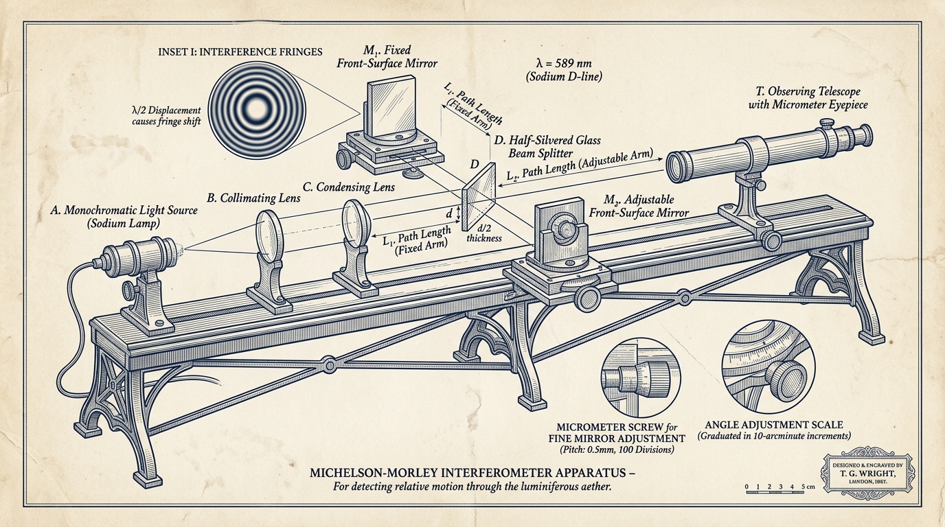 Experimental apparatus for measuring the speed of light: a Michelson-Morley style interferometer. The experiment measured the speed. The algebra had already established its existence.